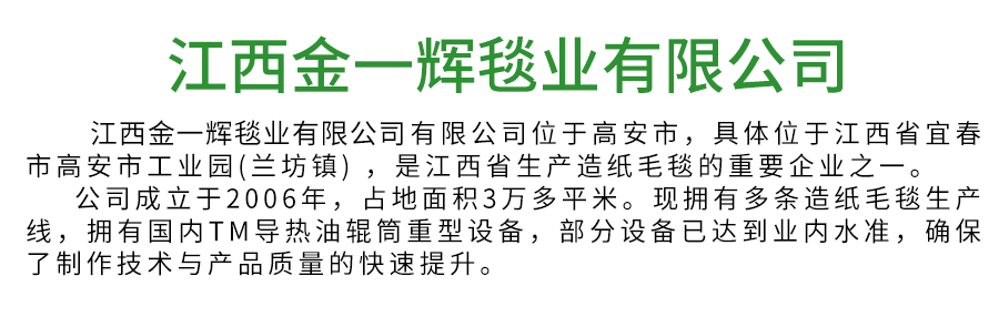 江西金一輝毯業有限公司位于高安市,具體位于江西省宜春市高安市工業園(蘭坊鎮) ,是江西省生產造紙毛毯的企業。